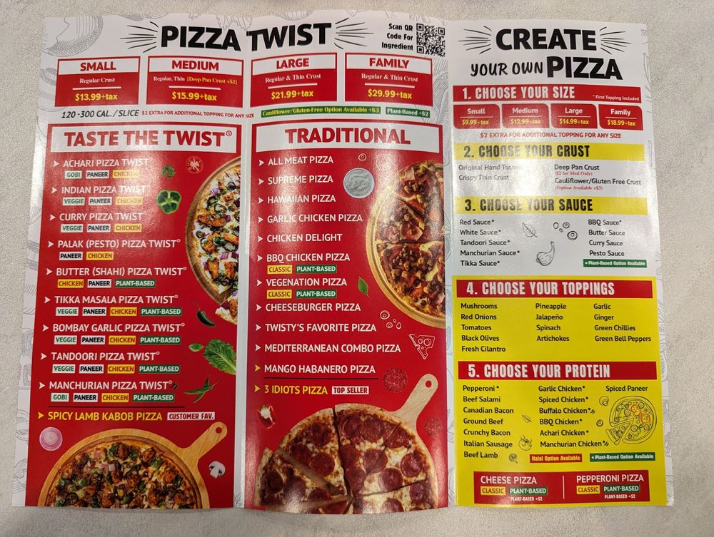 One of the highlights at Pizza Twist is their new arrival, the Achari Gobi Naan Pizza. This delectable creation is made with naan bread, white sauce, cheese, red onion, jalapeno, a drizzle of achari sauce, spiced fresh cauliflower, and topped with fresh cilantro and green onions. Trust me, this fusion of flavors is a game-changer and a definite must-try on the menu.